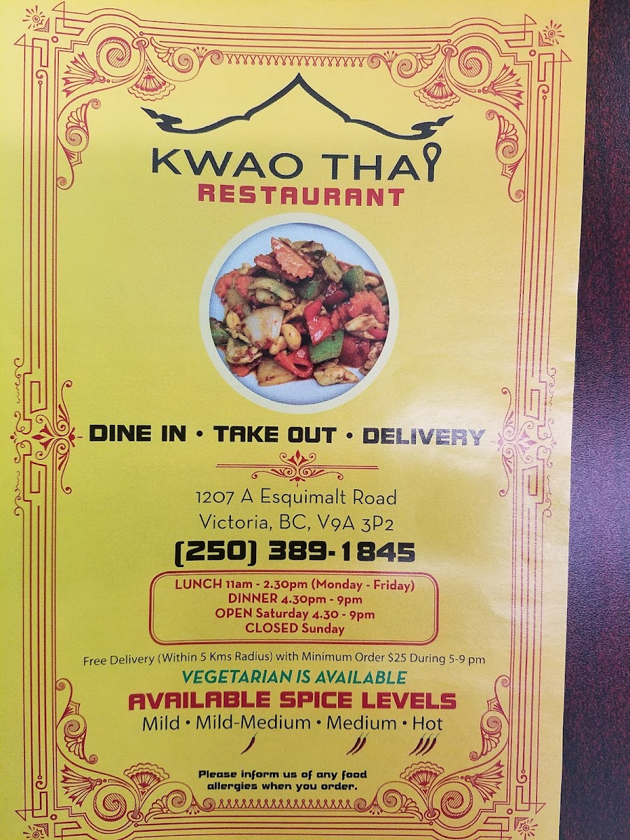 Welcome to Kwao Thai Restaurant, a hidden gem located at 1207 Esquimalt Rd, Victoria. Known for its authentic Thai cuisine, the menu is a delightful blend of traditional flavors and fresh ingredients. The appetizer selection includes tantalizing options like Deep Fried Wontons and Spring Rolls, perfectly paired with homemade Thai plum sauce.